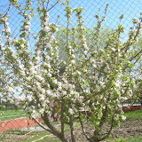 Han observado las flores de los manzanos, los tomates, los pimientos y las berenjenas que ya habían plantado. Los tulipanes están en flor y un melocotonero con flores rosas y hojas alargadas.